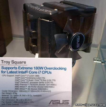 На стенде компании ASUS расположились процессорные кулеры, названия которых выдержаны в рыцарской тематике. Благодаря корреспонденту портала ixbt, вы можете поближе рассмотреть этих «рыцарей без страха и упрека».
